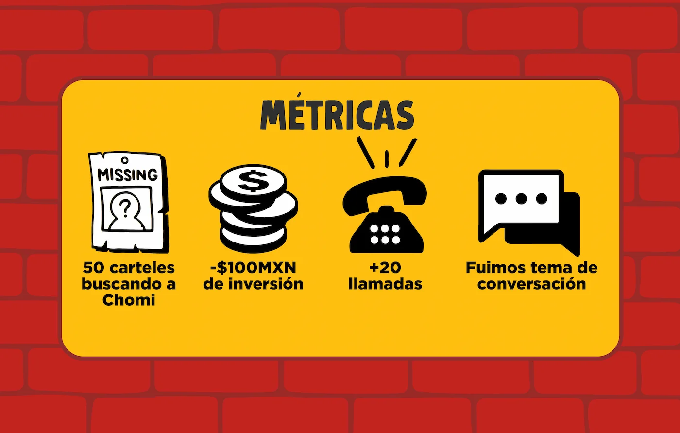 ¿Cuál es la mascota más exótica? Nosotros conocemos a alguien que perdió una ardilla, por lo que apoyamos con el diseño de cartel y tapizamos los alrededores en busca de Chomi la ardilla. Lo que la gente no sabe, esto es un expendio botanero con una gran campaña que dio a todos de qué hablar.